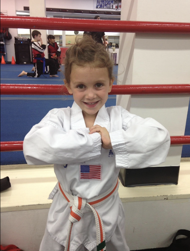 When not doing karate, you can find Hazel “tricking,” which is a really cool blend of gymnastics and karate that became popular in the early 2000s. “Think flips, kicks, and twists – it’s a ton of fun! I train weekly in Williamsburg with my coach Daniel and an awesome group of trickers,” Hazel said.